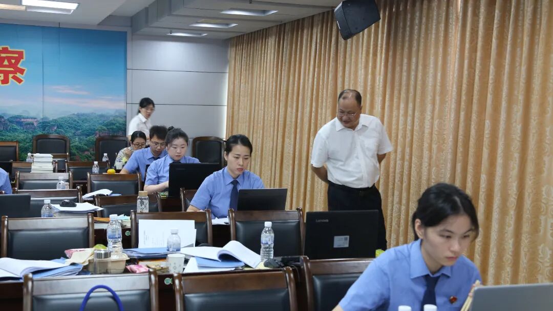 考试中途,市院党组书记、检察长林定明轻步走入考场巡考,了解赛程推进节奏、选手实时状态及后勤保障细节,并强调要高质量做好此次竞赛保障工作,确保选手考出满意成绩。