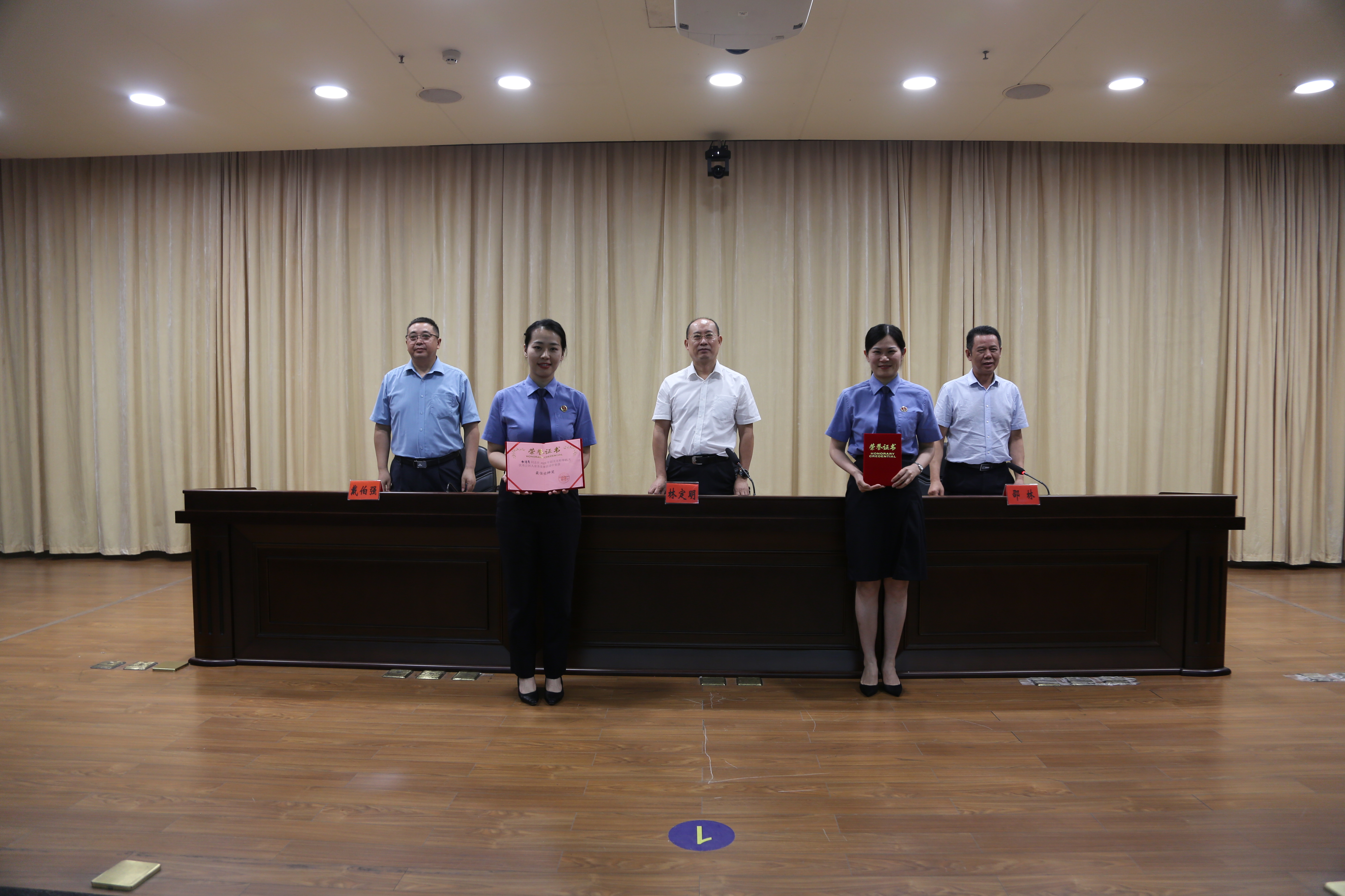 最后,市检察院党组书记、检察长林定明为获奖选手颁发证书,并对选手们在竞赛中展现的专业能力与职业精神给予高度认可。林定明强调,举办公诉人业务竞赛是加强刑事检察队伍专业化建设、提升刑事检察工作现代化水平的重要举措,希望全市检察干警以优秀为榜样,不断提升法律监督能力,将“高质效办好每一个案件”的理念融入日常工作,为平安韶关、法治韶关建设贡献更大检察力量。
