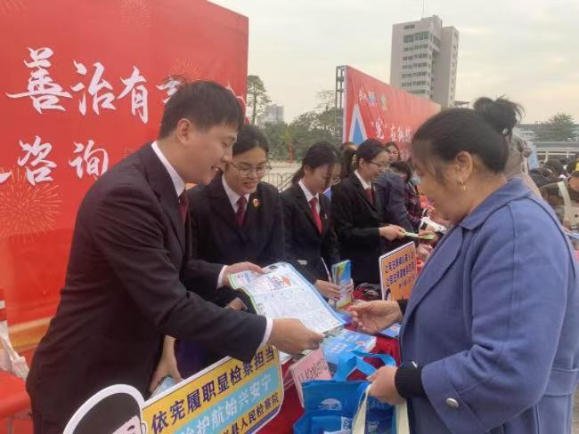 始兴县检察院在九龄广场举办普法宣传活动,通过发放普法资料,针对群众关心的法律难题进行细致解答,手把手教群众运用法律武器维护自身合法权益,让冰冷的法律条文变得有温度,让宪法精神真正走进千家万户。